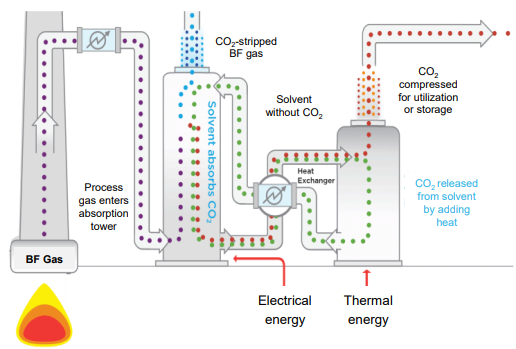 Process of CO2 Capture in Industrial Settings: Image from NETL.DOE.GOV - Point Source Carbon Capture from Industrial Sources