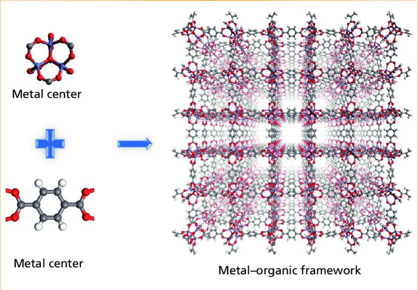Illustration of Metal-Organic Framework (MOF) Structure: Image from ResearchGate - Schematic drawing of a metal-organic framework (MOF) structure